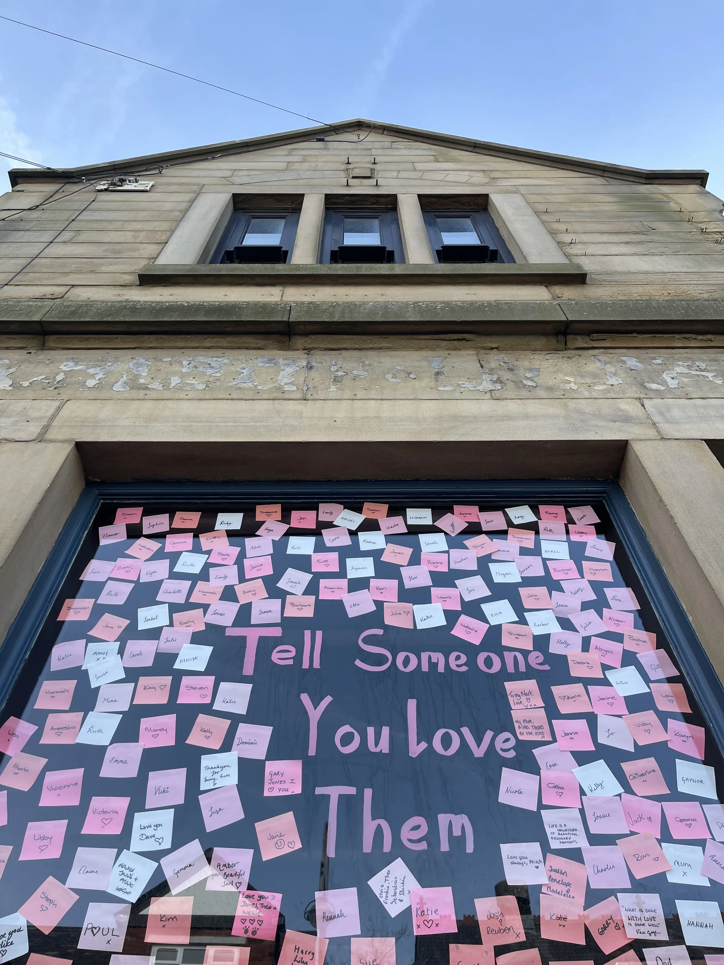 February 2026, our main window decorated by our members & team with the names of people we love.